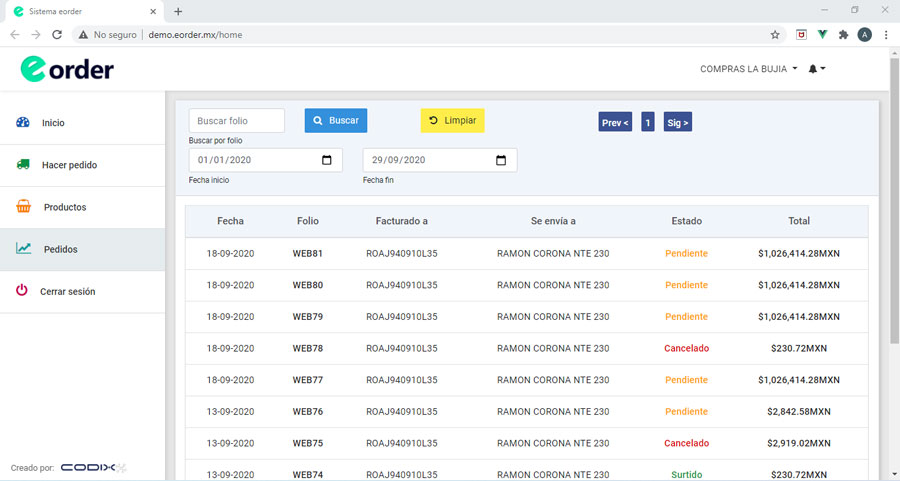 Comenzar a usar eorder es muy fácil y rápido. Solo necesitas contactar con nuestro equipo para obtener una cuenta de acceso. Una vez tengas la cuenta, descargas la aplicación "eorder Sync", instalas la aplicación en tu servidor, inicias sesión con tu cuenta y listo, las información se mantendrá sincronizada entre tu servidor y el servidor CODIX.